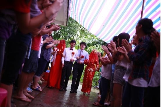 不过,婚礼当天的天气是16级的台风。因为大雨大风,很多交通不运行,村子的电也停止。