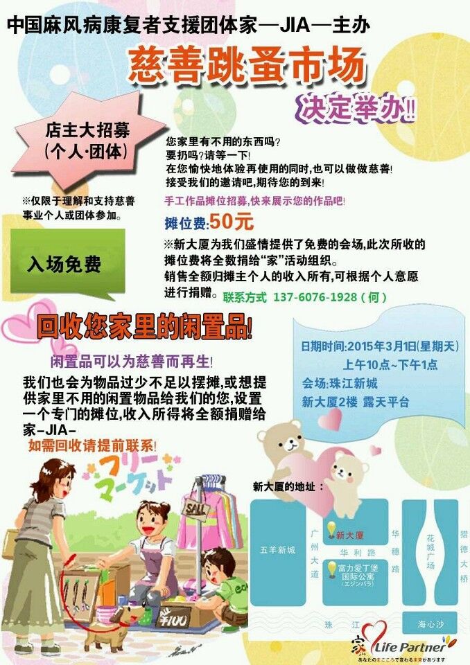 2015年3月1号,在JIA合作方的广州力派咨询服务有限公司的帮助下,JIA将开展跳蚤市场义卖。