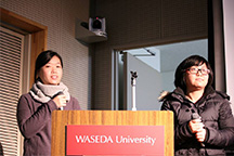 在早稻田大学的演讲会上,JIA办公室的林、張也做了讲话。(1月22日)
