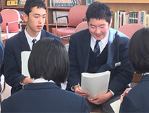 唐桑中学的学生们在演讲会后,分小组分享彼此的感想和心得。(1月28日)