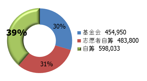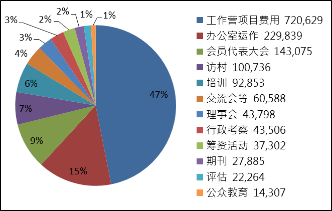 2016年,为了运作JIA需要的资金总计是1,536,783元。除了基金会支持和志愿者自筹的部分是, JIA办公室还需要筹集598,033元。