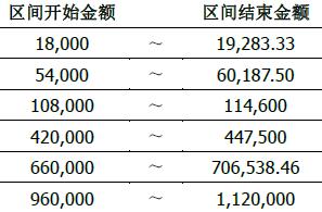 2. 奖金金额以下区间内: