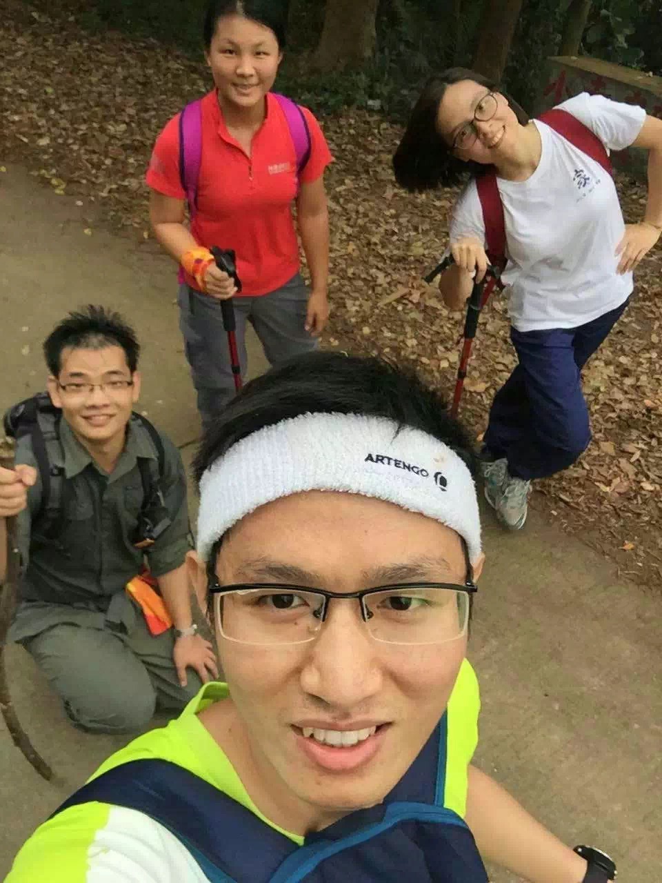 十分不巧的是,在赛前2周,有个队友临时被通知比赛那天有工作安排,不能参赛,而我们面临着可能失去记录团队成绩资格的境况。在最后关头,把有过100km徒步经历的小廖拉上了“贼船”,简单拉练一次,就上了赛场。