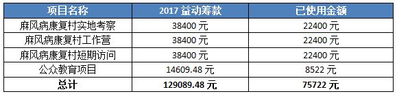 2017年度益动广东的捐赠用于2018年4月-2019年3月的工作营和相关筹备项目,截止10月31日,已使用75,722元,相关项目的财务状况如下。