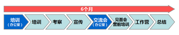 所以,本机构办公室首先开展培训,培养各个地区委员会的培训者。这些培训者回去各个地区委员会之后培养地区委员会里面的工作营的组织者(工作营协调员)。工作营协调员以6个月为一个周期筹备工作营,首先开展实地考察,了解康复村的需求之后,和村民制定项目,整理成计划书,在高校开展宣传招募志愿者,经过营前交流会、见面会、培训,进行工作营。