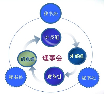 理事会分会员,信息组,外部和财务四个职能小组;