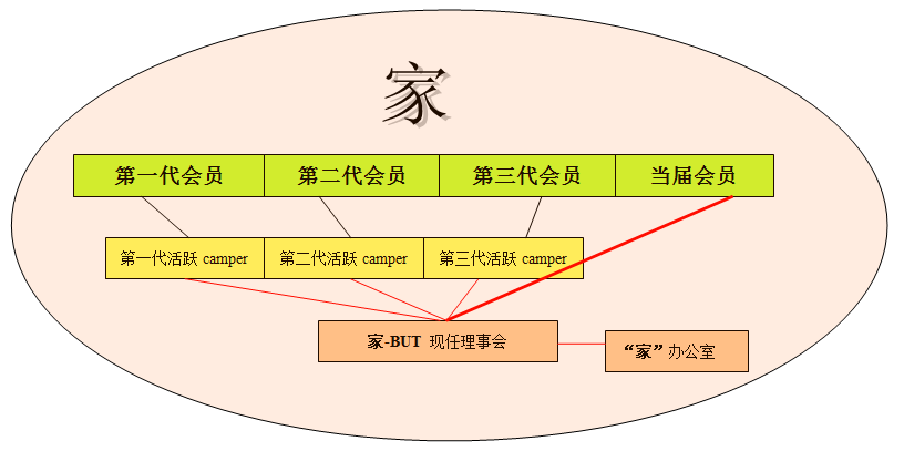 -- 各代联系人包括该代活跃camper和BUT该代的理事(退任或是在任的),代与代之间的联系由跨代活跃camper和跨代理事主导,是代与代之间保持联系的主要纽带。