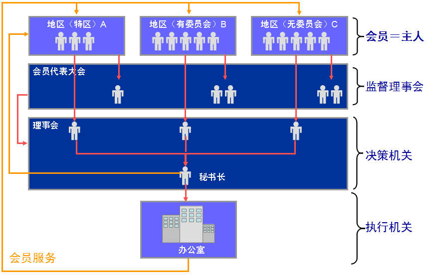 JIA会员代表在每年8月份的会员代表大会上听取理事会报告(过去一年的理事会决策和办公室执行情况,未来一年的机构发展方向),通过表决授权给理事会担任机构的决策机关。